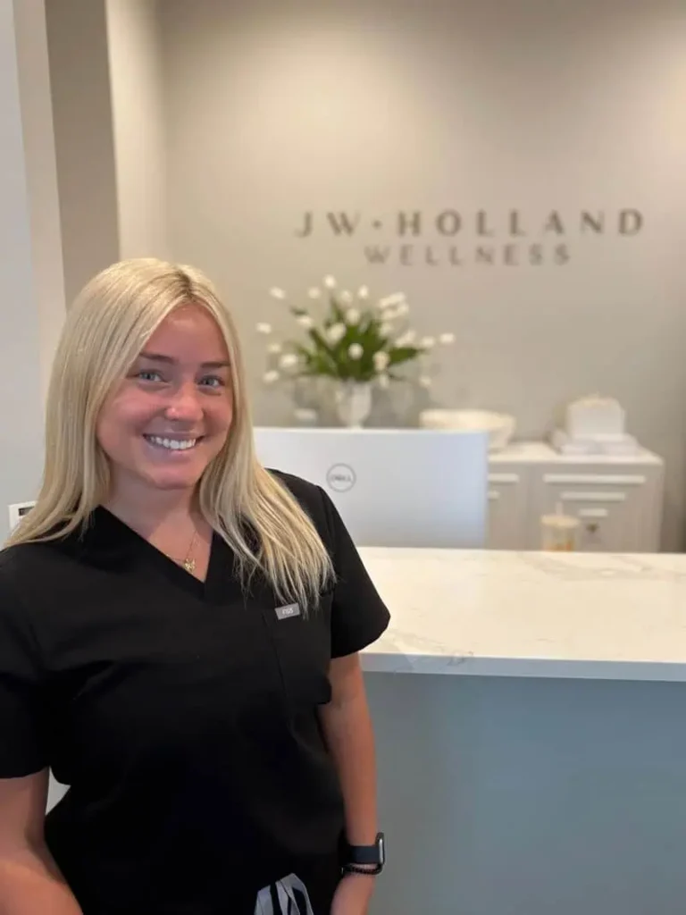 Jensen is a key part of the guest experience at JW Holland Wellness & Aesthetics, bringing organization, professionalism, and care to every patient interaction. As a Patient Care Coordinator, she assists with check-in and check-out, schedules appointments, and ensures each guest’s visit runs smoothly from start to finish. Jensen is known for her kind demeanor and strong attention to detail, helping guests feel comfortable, informed, and confident as they begin their wellness and aesthetic journey.